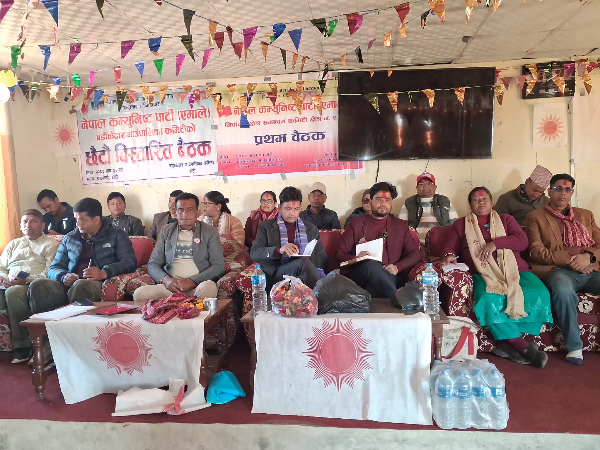 डोटी : नेपाल कम्युनिस्ट पार्टी (एमाले) बडीकेदार गाउँपालिका कमिटी, डोटीको छैटौं विस्तारित बैठक बुधबार सम्पन्न भएको छ। गाउँपालिका कमिटी अध्यक्ष खगेन्द्र बमको अध्यक्षतामा सम्पन्न बैठकले आगामी फागुन २१ गते हुने प्रतिनिधि सभा सदस्य निर्वाचनलाई केन्द्रमा राख्दै आवश्यक रणनीति तथा संगठनात्मक तयारीबारे छलफल गरेको जनाएको छ।